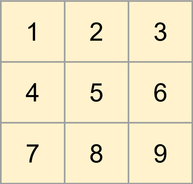 Notice that despite the above result limits the number of linearly embeddable games significantly, our example game tic-tac-toe is still linearly embeddable. Indeed we can find a linear embedding for it. To do this we first enumerate each cell as follows:
